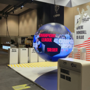 Derse übersetzte die Verbindung von Liga und Verband gestalterisch in eine gemeinsame Markenwelt. Die kreative Leitidee inszeniert Handball als dynamisches Ökosystem – emotional aufgeladen und technologisch vernetzt, als Plattform für Dialog und Kooperation. Die zentrale LED-Sphere mit zwei Metern Durchmesser fungiert dabei als immersives Zentrum und bringt Geschwindigkeit, Emotionalität und internationale Strahlkraft des Handballs räumlich auf den Punkt.